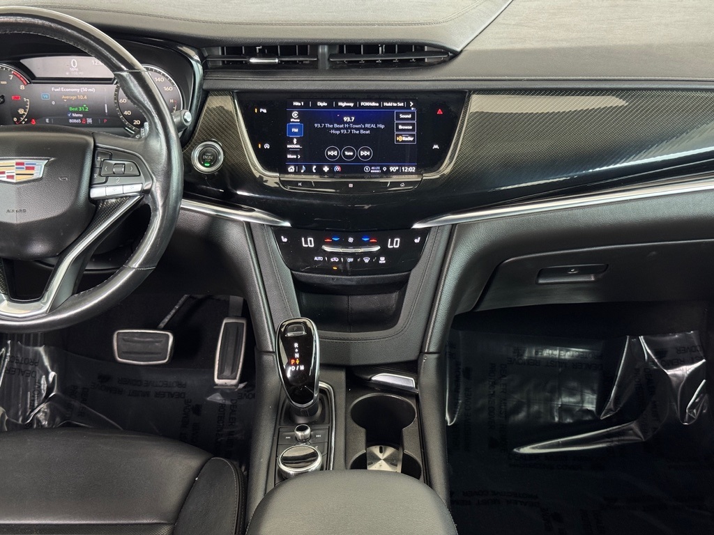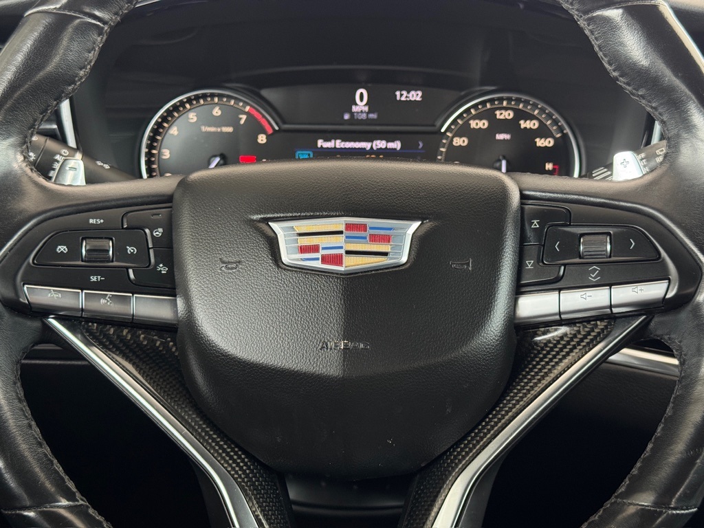 o High-beam Headlights, Auto tilt-away steering wheel, Auto-dimming door mirrors, Auto-dimming Rear-View mirror, Automatic Emergency Braking, Automatic Stop/Start w/Disable, Automatic temperature control, Body-Color Door Handles, Bose Premium 8-Speaker Audio System, Brake assist, Bumpers: body-color, Compass, Delay-off headlights, Driver & Front Passenger Heated Seats, Driver door bin, Driver vanity mirror, Dual Driver Info Center Display Gauge Cluster, Dual front impact airbags, Dual front side impact airbags, Electronic Stability Control, Emergency communication system: OnStar and Cadillac connected services capable, Exterior Parking Camera Rear, Floor Liner Package (LPO), Four wheel independent suspension, Front & Rear Park Assist, Front anti-roll bar, Front Bucket Seats, Front Center Armrest, Front dual zone A/C, Front reading lights, Fully automatic headlights, Garage door transmitter, Heated door mirrors, Heated front seats, Heated steering wheel, Illuminated entry, Inside Rear-View Auto-Dimming Mirror, Knee airbag, Lane Departure Warning System, Leather Seating Surfaces w/Mini-Perforated Inserts, Leather steering wheel, Low tire pressure warning, Memory seat, Occupant sensing airbag, Outside temperature display, Overhead airbag, Overhead console, Panic alarm, Passenger door bin, Passenger vanity mirror, Performance Suspension, Power door mirrors, Power driver seat, Power Liftgate, Power moonroof: UltraView, Power passenger seat, Power steering, Power windows, Radio data system, Radio: Cadillac User Experience AM/FM Stereo, Rain sensing wipers, Rear air conditioning, Rear anti-roll bar, Rear reading lights, Rear seat center armrest, Rear window defroster, Rear window wiper, Remote keyless entry, Roof rack: rails only, Security system, SiriusXM w/360L, Speed control, Speed-sensing steering, Split folding rear seat, Spoiler, Sport Package 1SF, Steering wheel memory, Steering wheel mounted audio controls, Tachometer, Teen Driver, Telescoping steering wheel, Tilt steering wheel, Traction control, Trip computer, Turn signal indicator mirrors, Variably intermittent wipers, Voltmeter, Wheels: 20" 12-Spoke Diamond Cut Alloy, Wireless Apple CarPlay/Wireless Android Auto.
