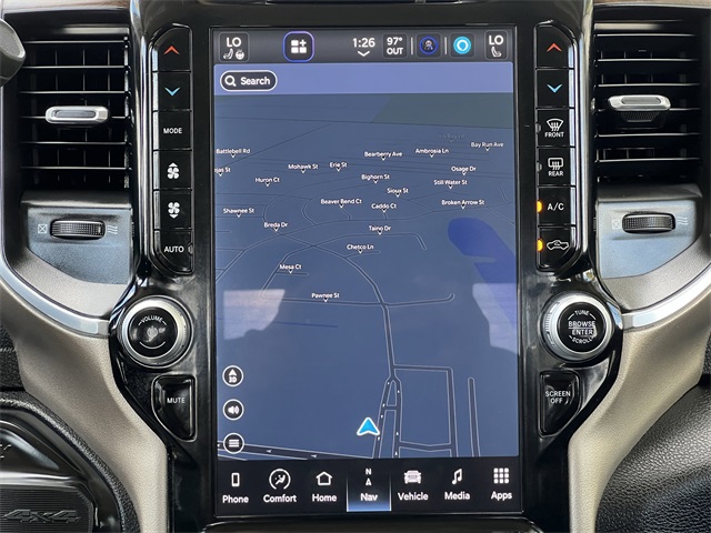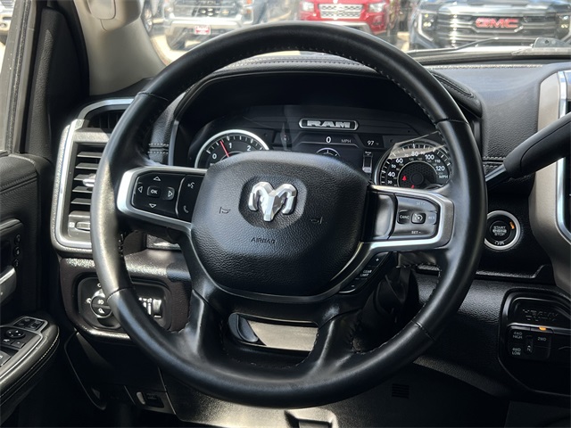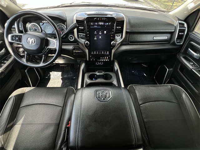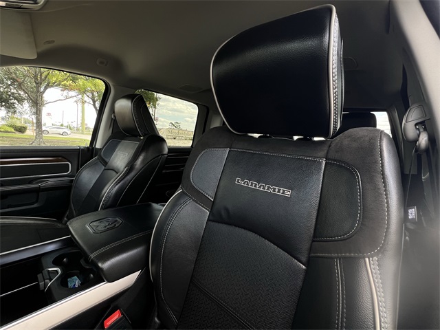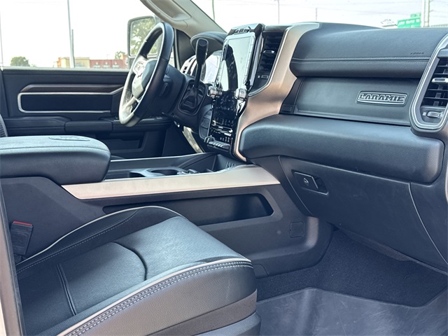 roid Auto, Auto Adjust In Reverse Exterior Mirrors, Auto Dim Exterior Mirror, Auto High Beam Headlamp Control, Auto Power-Folding Mirrors, Auto-Dimming Exterior Passenger Mirror, Automatic temperature control, Bed Utility Group, Blind Spot & Cross Path Detection, BLUETOOTH / HANDSFREE, Brake assist, Bumpers: body-color, Center Hub, Chrome Exterior Mirrors, Chrome Flat Wheel-to-Wheel Side Steps, CLEAN CARFAX!, Compass, Connected Travel & Traffic Services, Connectivity - US/Canada, Delay-off headlights, Disassociated Touchscreen Display, Driver door bin, Driver vanity mirror, Dual 730 Amp Maintenance Free Batteries, Dual front impact airbags, Dual front side impact airbags, Electronic Stability Control, Electronically Controlled Throttle, Engine Block Heater, Exterior Mirrors Courtesy Lamps, Exterior Mirrors w/Heating Element, Exterior Mirrors w/Memory, Exterior Mirrors w/Supplemental Signals, Foam Bottle Insert (Door Trim Panel), For Details, Visit DriveUconnect.com, For More Info, Call 800-643-2112, Forward & Reverse Utility Lights, Front anti-roll bar, Front Center Armrest w/Storage, Front dual zone A/C, Front LED Fog Lamps, Front License Plate Bracket, Front reading lights, Front Seat Back Map Pockets, Fully automatic headlights, Garage door transmitter, Global Telematics Box Module (TBM), Google Android Auto, GPS Antenna Input, GPS Navigation, HD Radio, Heated door mirrors, Heated Front Seats, Heated front seats, Heated Steering Wheel, Heated steering wheel, Illuminated entry, Integrated Voice Command w/Bluetooth, Laramie Level 1 Equipment Group, Leather steering wheel, Leather Trim 40/20/40 Bench Seat, LED Bed Lighting, LED Reflector Headlamps, LED Tail Lamps, LOCAL TRADE IN!, Low tire pressure warning, Manufacturer's Statement of Origin, Mirror Running Lights, MOPAR Deployable Bed Step, MOPAR Front & Rear Rubber Floor Mats, MOPAR Spray In Bedliner, NAVIGATION, Navigation System, NON SMOKER VEHICLE, Occupant sensing airbag, Off-Road Information Pages, Outside temperature display, Overhead airbag, Overhead console, Panic alarm, ParkSense Front/Rear Park Assist System, ParkView Rear Back-Up Camera, Passenger door bin, Passenger vanity mirror, Power 2-Way Driver Lumbar Adjust, Power 2-Way Passenger Lumbar Adjust, Power Adjust 8-Way Driver Seat, Power Adjust 8-Way Front Passenger Seat, Power Adjust Mirrors, Power Adjustable Convex Aux Mirrors, Power Adjustable Pedals w/Memory, Power door mirrors, Power driver seat, Power Heated Fold Telescopic Mirrors w/Memory, Power passenger seat, Power steering, Power Telescoping Mirrors, Power windows, PROFESSIONALLY DETAILED FOR DELIVERY!, Quick Order Package 2HH Laramie, Radio data system, Radio: Uconnect 5 Nav w/12.0" Display, Rain Sensitive Windshield Wipers, Rear 60/40 Folding Seat, Rear anti-roll bar, Rear Power Sliding Window, Rear reading lights, Rear seat center armrest, Rear step bumper, Rear Window Defroster, Rear window defroster, Remote keyless entry, Remote Tailgate Release, Security system, Selectable Tire Fill Alert, SiriusXM Radio Service, SiriusXM w/360L, Speed control, Split folding rear seat, Steering wheel mounted audio controls, SUPER LOW MILES!, Tachometer, Tilt steering wheel, Tip Start, Tow Hooks, Traction control, Trailer Tow Pages, Trip computer, Turn signal indicator mirrors, Variably intermittent wipers, Voltmeter, Wheels: 18" x 8.0" Polished Aluminum. Clean CARFAX. Certified.