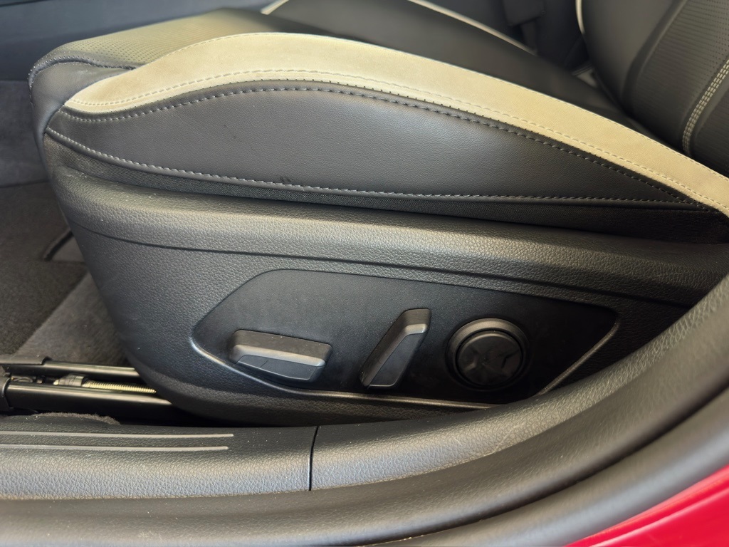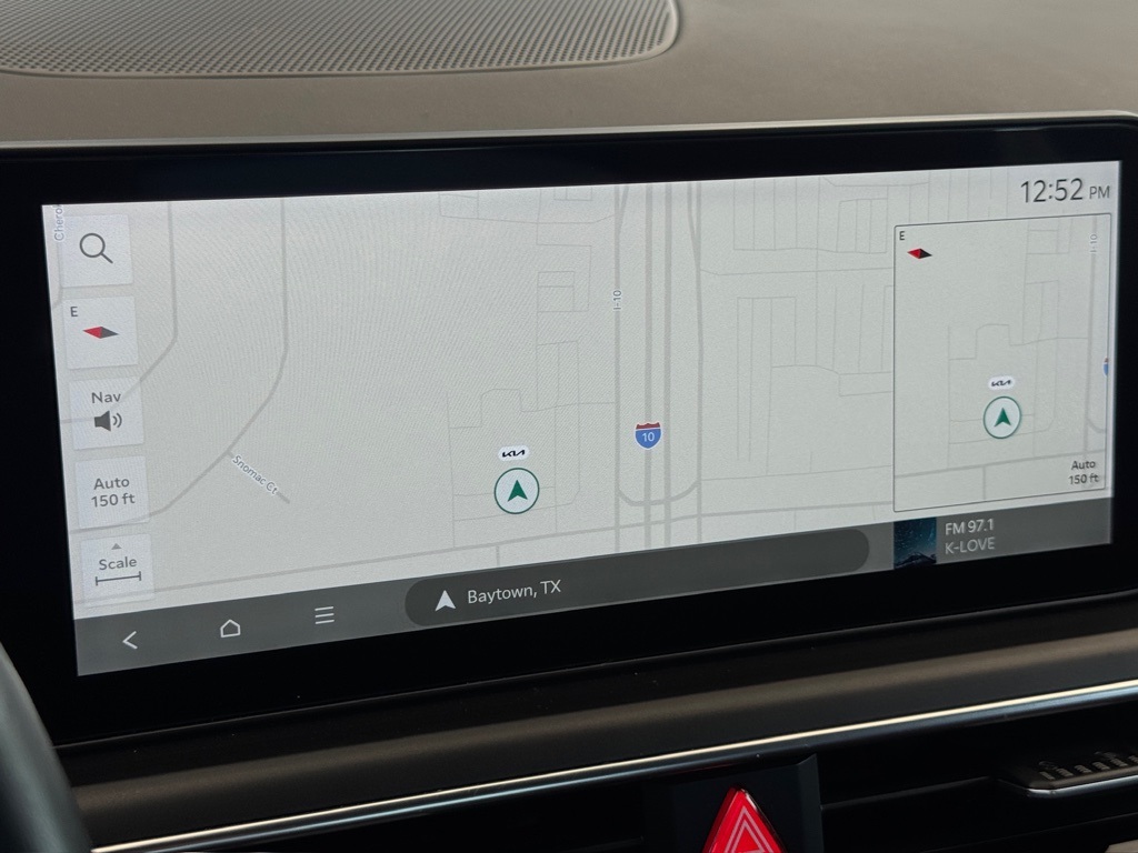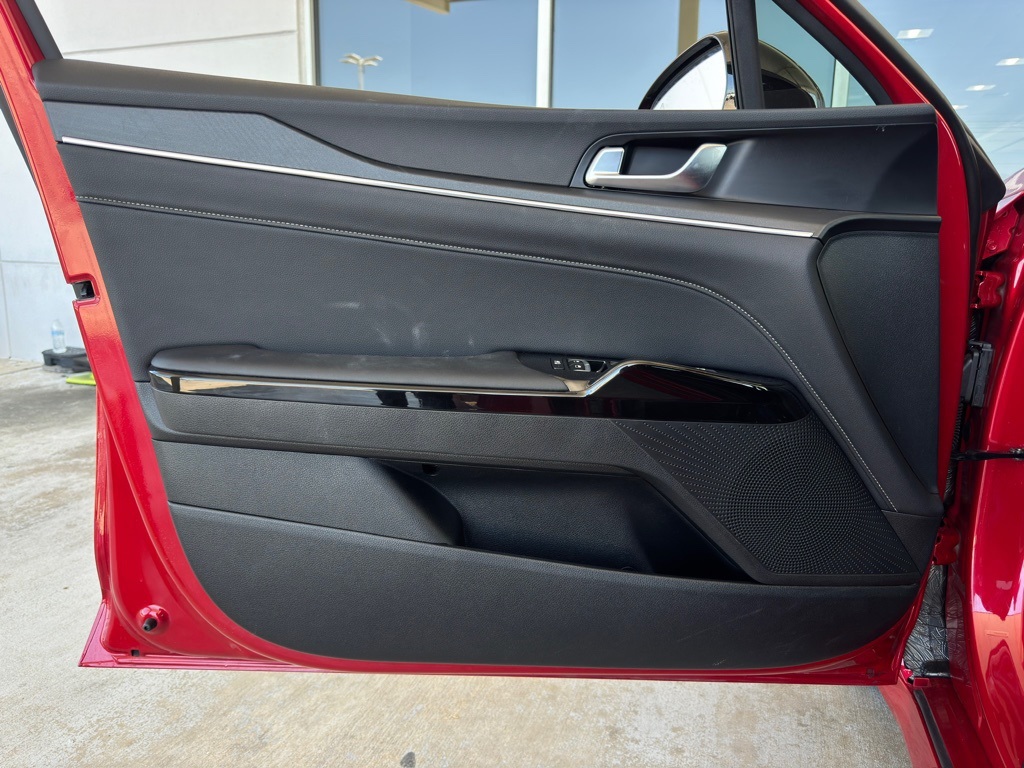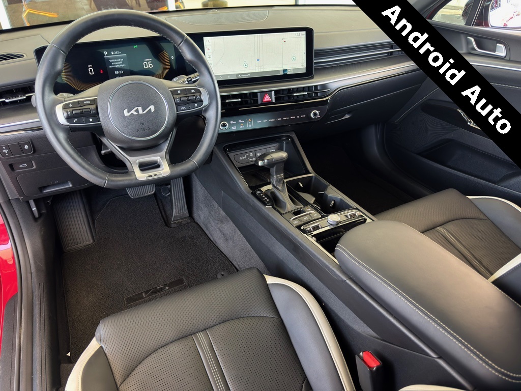 bility Control, Emergency communication system: Kia Connect (includes 1 year free trial), Four wheel independent suspension, Front anti-roll bar, Front Bucket Seats, Front Center Armrest, Front dual zone A/C, Front fog lights, Front reading lights, Fully automatic headlights, Heated door mirrors, Heated Front Bucket Seats, Heated front seats, Heated steering wheel, Illuminated entry, Knee airbag, Leather Shift Knob, Leather steering wheel, Low tire pressure warning, Navigation System, Occupant sensing airbag, Outside temperature display, Overhead airbag, Overhead console, Panic alarm, Passenger door bin, Passenger vanity mirror, Power door mirrors, Power driver seat, Power steering, Power windows, Radio data system, Radio: AM/FM Audio System, Rear anti-roll bar, Rear seat center armrest, Rear side impact airbag, Rear window defroster, Remote keyless entry, Security system, Speed control, Speed-sensing steering, Split folding rear seat, Sport steering wheel, Steering wheel mounted audio controls, Tachometer, Telescoping steering wheel, Tilt steering wheel, Traction control, Trip computer, Turn signal indicator mirrors, Variably intermittent wipers, Wheels: 18" x 7.5J Gloss Black Machined Finish Alloy.
