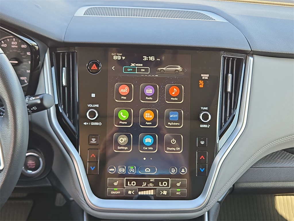l of the Protection Package items for all of our vehicles, some vehicles may not have these items installed at the time of sale and can be added upon request. THIS VEHICLE IS EQUIPPED WITH THE FOLLOWING FEATURES AND OPTIONS: BSD & RCTA & Keyless Access & Push Button Start (Blind Spot Detection (BSD), Hands-Free Power Rear Gate, Keyless Access w/Push Button Start, Power Moonroof, Radio: Subaru 11.6" Multimedia System w/Navigation, and Rear Cross Traffic Alert (RCTA)), Popular Package #1A (All-Weather Floor Liners, Auto-Dimming Mirror w/Compass & HomeLink, and Rear Bumper Cover), 4-Wheel Disc Brakes, 6 Speakers, ABS brakes, Air Conditioning, Alloy wheels, AM/FM radio: SiriusXM with 360L, Apple CarPlay & Android Auto, Auto High-beam Headlights, Automatic temperature control, Brake assist, Bumpers: body-color, Cloth Upholstery, Driver door bin, Driver vanity mirror, Dual front impact airbags, Dual front side impact airbags, Electronic Stability Control, Emergency communication system: MySubaru Safety (3-year free trial), Exterior Parking Camera Rear, Four wheel independent suspension, Front anti-roll bar, Front Bucket Seats, Front Center Armrest w/Storage, Front dual zone A/C, Front fog lights, Front reading lights, Fully automatic headlights, Heated door mirrors, Heated Front Bucket Seats, Heated front seats, Illuminated entry, Knee airbag, Leather Shift Knob, Leather steering wheel, Low tire pressure warning, Occupant sensing airbag, Outside temperature display, Overhead airbag, Overhead console, Panic alarm, Passenger door bin, Passenger vanity mirror, Power door mirrors, Power driver seat, Power steering, Power windows, Radio: Subaru 11.6" Multimedia Plus System, Rear anti-roll bar, Rear Seat Back Protector, Rear seat center armrest, Rear window defroster, Rear window wiper, Remote keyless entry, Roof rack, Security system, Speed control, Speed-sensing steering, Split folding rear seat, Spoiler, Steering wheel mounted audio controls, Tachometer, Telescoping steering wheel, Tilt steering wheel, Traction control, Trip computer, Turn signal indicator mirrors, Variably intermittent wipers, and Wheels: 17" x 7J Black Aluminum-Alloy.
