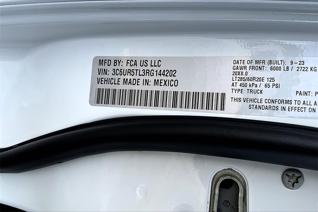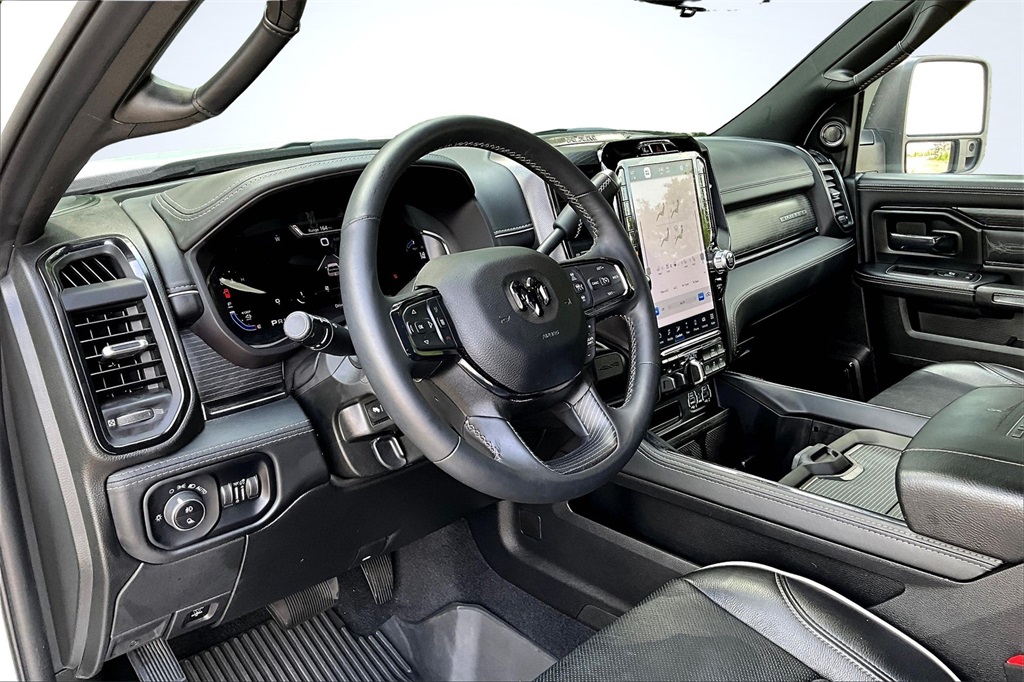 Bright White Mega Cab Limited, where luxury meets strength! Loaded with leather seating, advanced Uconnect system, premium audio, Mega Cab passenger room, heavy-duty towing, and upscale details.