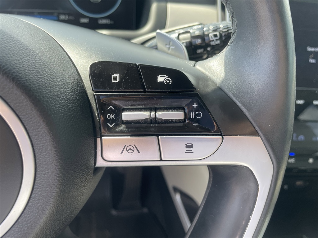 e assist, Bumpers: body-color, Cargo Cover, Carpeted Floor Mats, Delay-off headlights, Driver door bin, Driver vanity mirror, Dual front impact airbags, Dual front side impact airbags, Electronic Stability Control, Emergency communication system: Blue Link Connected Car Service (3-year complimentary subscription), Four wheel independent suspension, Front anti-roll bar, Front Bucket Seats, Front Center Armrest, Front dual zone A/C, Front reading lights, Fully automatic headlights, Garage door transmitter: HomeLink, Heated & Ventilated Front Bucket Seats, Heated door mirrors, Heated front seats, Heated rear seats, Heated steering wheel, Illuminated entry, Leather Seat Trim, Low tire pressure warning, Memory seat, Navigation System, Occupant sensing airbag, Outside temperature display, Overhead airbag, Overhead console, Panic alarm, Passenger door bin, Passenger vanity mirror, Power door mirrors, Power driver seat, Power Liftgate, Power moonroof, Power passenger seat, Power steering, Power windows, Radio data system, Radio: Bose Premium w/AM/FM/HD/SiriusXM Audio System, Rain sensing wipers, Rear anti-roll bar, Rear reading lights, Rear seat center armrest, Rear window defroster, Rear window wiper, Remote keyless entry, Roof rack: rails only, Security system, Speed control, Split folding rear seat, Spoiler, Steering wheel mounted audio controls, Tachometer, Telescoping steering wheel, Tilt steering wheel, Traction control, Trip computer, Turn signal indicator mirrors, Variably intermittent wipers, Ventilated front seats, and Wheels: 19" x 7.5J" Machine-Face Finish Alloy.