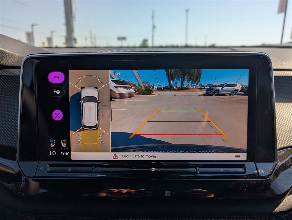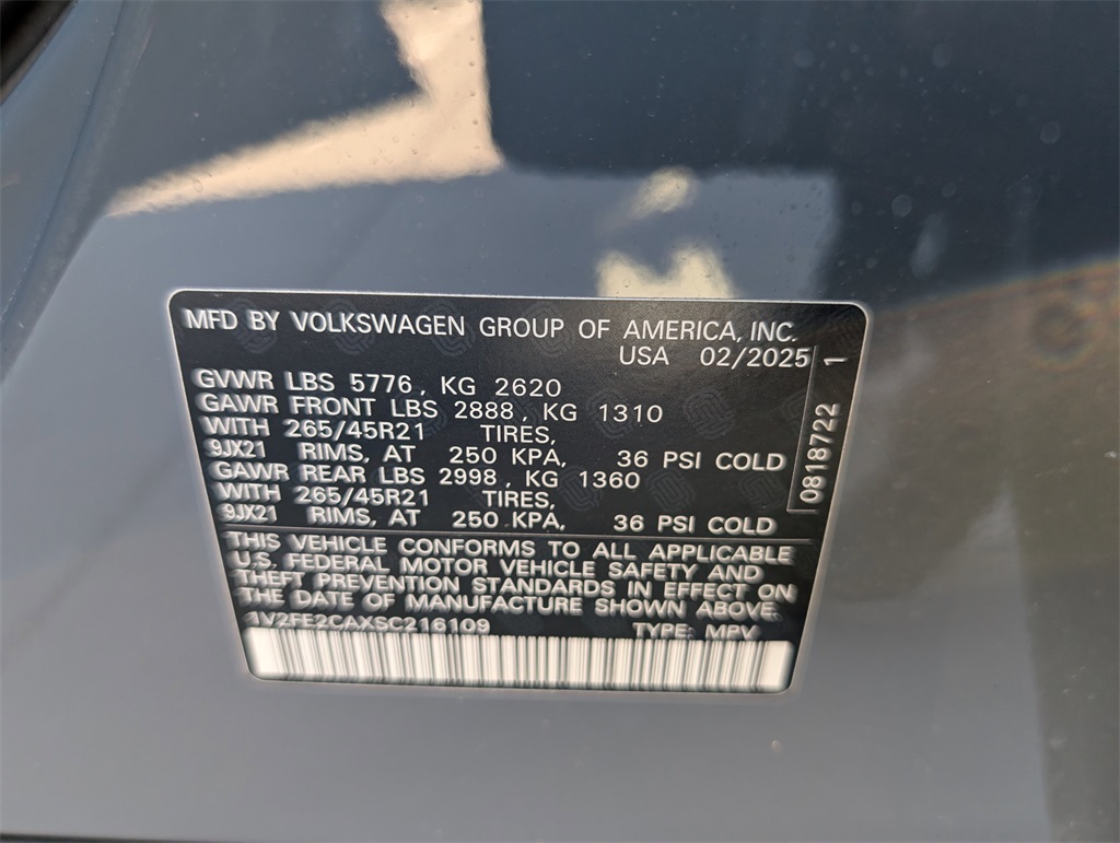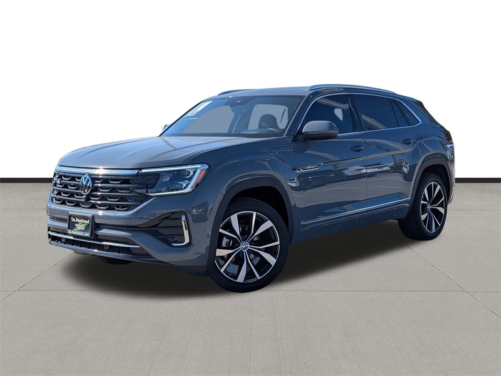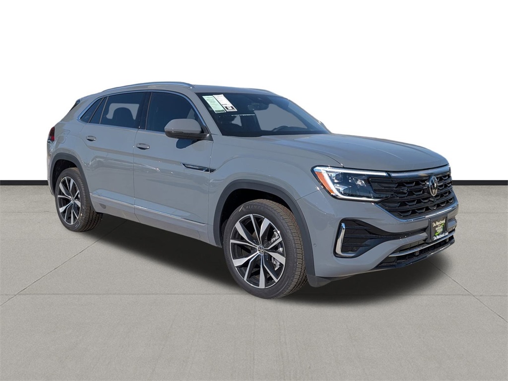 Brake assist, Bumpers: body-color, Compass, Delay-off headlights, Driver door bin, Driver vanity mirror, Dual front impact airbags, Dual front side impact airbags, Electronic Stability Control, Emergency communication system: VW Car-Net Safe & Secure 5-year, Exterior Parking Camera Rear, Four wheel independent suspension, Front anti-roll bar, Front Bucket Seats, Front Center Armrest, Front dual zone A/C, Front fog lights, Front reading lights, Fully automatic headlights, harman/kardon® Speakers, Heads-Up Display, Heated & Actively Ventilated Front Seats, Heated door mirrors, Heated front seats, Heated rear seats, Heated steering wheel, Illuminated entry, Leather steering wheel, Low tire pressure warning, Memory seat, Navigation System, Occupant sensing airbag, Outside temperature display, Overhead airbag, Overhead console, Panic alarm, Passenger door bin, Passenger vanity mirror, Perforated Vienna Leather Seating Surfaces, Power door mirrors, Power driver seat, Power Liftgate, Power moonroof: Panoramic, Power passenger seat, Power steering, Power windows, Radio data system, Radio: MIB3 Discover Pro Navigation AM/FM/HD, Rain sensing wipers, Rear anti-roll bar, Rear audio controls, Rear reading lights, Rear seat center armrest, Rear window defroster, Rear window wiper, Remote keyless entry, Security system, Speed control, Speed-sensing steering, Split folding rear seat, Spoiler, Sport steering wheel, Steering wheel mounted audio controls, Tachometer, Telescoping steering wheel, Tilt steering wheel, Traction control, Trip computer, Turn signal indicator mirrors, Variably intermittent wipers, Ventilated front seats, and Wheels: 21" 2-Tone Machined Alloy. 2025 Volkswagen Atlas Cross Sport 2.0T SEL Premium R-Line 4D Sport Utility Gray 19/26 City/Highway MPG Price includes: $2500 - Retail Customer Bonus. Exp. 11/03/2025