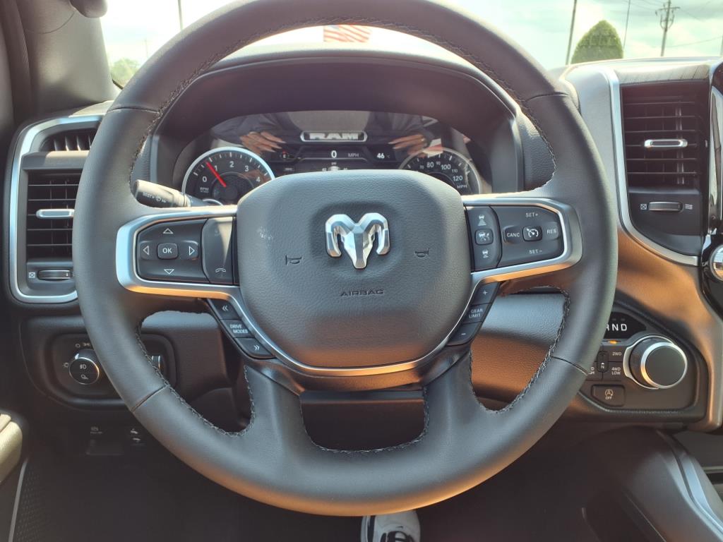 The 2026 RAM Crew Cab 4x4, 1500 Big Horn/Lone Star is a state-of-the-art motorcar that is sure to impress. Boasting a 3.0 liter 6 cylinder engine with twin turbochargers, this powerful vehicle has a blue metallic exterior and features such as a touch screen display, Bluetooth audio connection, blind spot sensor, hill start assist, part time with on demand four wheel drive, and Bluetooth phone connectivity. With its advanced technology and sleek design, this car is sure to be a reliable and comfo