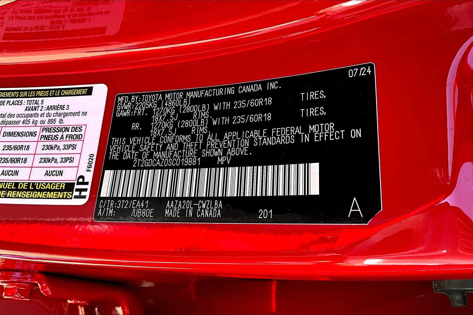 2T2GDCAZ0SC019881Stock #