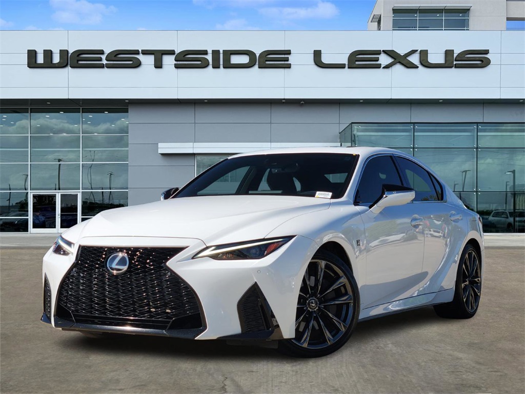 Recent Arrival! 2023 Lexus IS 350 F SPORT Certified. Black Artificial Leather, Lexus Memory System for Driver's Seat, Memory Package, Moonroof, Navigation Package, Outside Mirrors w/Auto Tilt-Down in Reverse, Power Tilt & Telescoping Steering Wheel. Ultra White RWD 8-Speed Automatic 3.5L V6 DOHC Dual VVT-i 24V