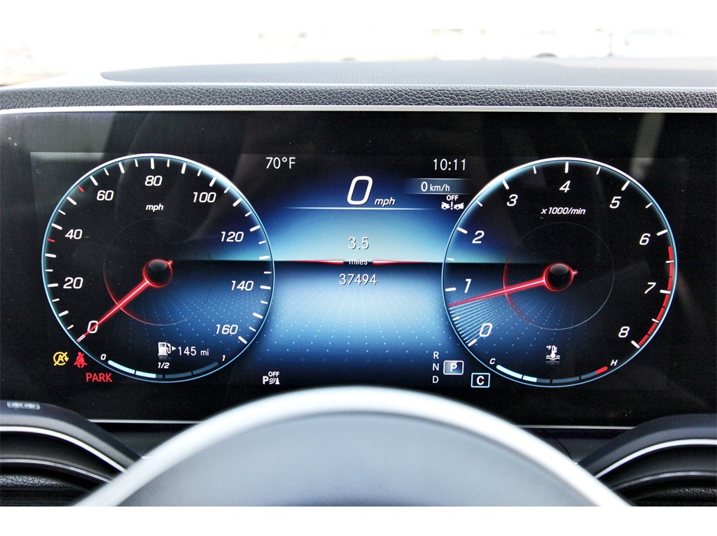 perature control, Brake assist, Bumpers: body-color, Compass, Delay-off headlights, Driver door bin, Driver vanity mirror, Dual front impact airbags, Dual front side impact airbags, Electronic Stability Control, Emergency communication system: eCall Emergency System, Exterior Parking Camera Rear, Four wheel independent suspension, Front anti-roll bar, Front Bucket Seats, Front Center Armrest, Front dual zone A/C, Front reading lights, Fully automatic headlights, Garage door transmitter: HomeLink, Genuine wood console insert, Genuine wood dashboard insert, Genuine wood door panel insert, Heated door mirrors, Heated front seats, Heated Power Front Seats w/Driver Memory, Illuminated entry, Knee airbag, Leather steering wheel, Low tire pressure warning, MB-Tex Upholstery, Memory seat, Navigation system: MBUX, Occupant sensing airbag, Outside temperature display, Overhead airbag, Panic alarm, Passenger door bin, Passenger vanity mirror, Power adjustable front head restraints, Power door mirrors, Power driver seat, Power Liftgate, Power moonroof, Power passenger seat, Power steering, Power windows, Premium audio system: MBUX, Radio data system, Radio: 12.3" Media Display w/Touchscreen, Rain sensing wipers, Rear anti-roll bar, Rear fog lights, Rear reading lights, Rear seat center armrest, Rear window defroster, Rear window wiper, Remote keyless entry, Security system, Speed control, Speed-sensing steering, Speed-Sensitive Wipers, Split folding rear seat, Spoiler, Steering wheel memory, Steering wheel mounted audio controls, Tachometer, Telescoping steering wheel, Tilt steering wheel, Traction control, Trip computer, Turn signal indicator mirrors, Weather band radio, and Wheels: 19" Twin 5-Spoke!!