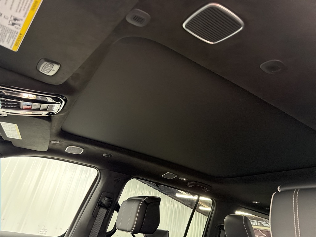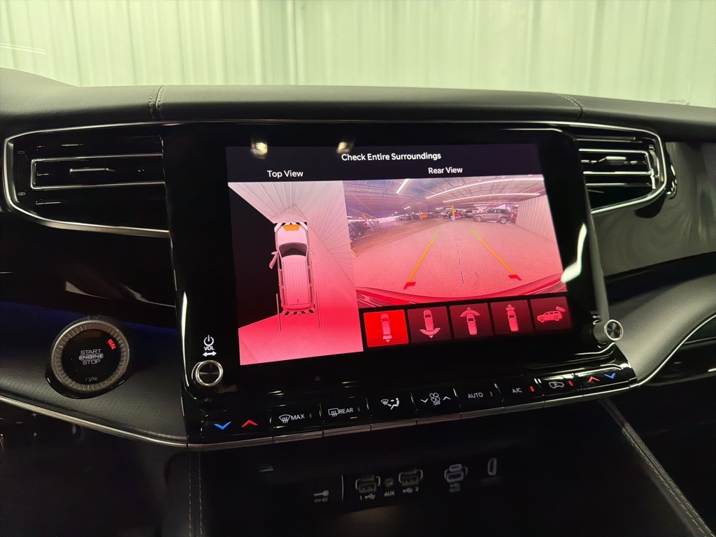 arge-Only USB Ports, 40/20/40 2nd Row Bench Power Tip/Slide, and 8-Passenger Seating), Convenience Group III (Advanced Security Alert System, Interior Rear Facing Camera, and Night Vision/Pedestrian-Animal Detection), HD Trailer Tow Package (2 Speed On Demand Transfer Case, Black Tow Hooks, Heavy-Duty Engine Cooling, Removable Rear Tow Hook, Selec-Speed Control, Trailer Brake Control, and Trailer Hitch Zoom), MOPAR Interior Protection Package (All-Season Floor Mats and Cargo Tray), Quick Order Package 28T Obsidian, Rear Seat Video Group 1 (Amazon Fire TV Built-In, Seatback Video Screens, and Video USB Port), Two Tone Paint Group, 3.92 Rear Axle Ratio, 3rd row seats: bench, 4-Wheel Disc Brakes, ABS brakes, Adjustable pedals, Air Conditioning, Alloy wheels, AM/FM radio: SiriusXM with 360L, Anti-whiplash front head restraints, Apple CarPlay/Android Auto, Audio memory, Auto High-beam Headlights, Auto-dimming door mirrors, Auto-dimming Rear-View mirror, Auto-leveling suspension, Automatic temperature control, Brake assist, Bumpers: body-color, Compass, Delay-off headlights, Driver door bin, Driver vanity mirror, Driver's Seat Mounted Armrest, Dual front impact airbags, Dual front side impact airbags, Electronic Stability Control, Emergency communication system: Jeep Connect, Four wheel independent suspension, Front anti-roll bar, Front Bucket Seats, Front Center Armrest w/Storage, Front dual zone A/C, Front fog lights, Front reading lights, Fully automatic headlights, Garage door transmitter, Hands-Free Active Driving Assist System, Heads-Up Display, Heated door mirrors, Heated front seats, Heated rear seats, Heated steering wheel, Illuminated entry, Knee airbag, Leather steering wheel, Leather Trimmed Bucket Seats, Low tire pressure warning, Memory seat, Navigation System, Normal Duty Suspension, Occupant sensing airbag, Outside temperature display, Overhead airbag, Overhead console, Panic alarm, Passenger door bin, Passenger seat mounted armrest, Passenger vanity mirror, Pedal memory, Power adjustable front head restraints, Power door mirrors, Power driver seat, Power Liftgate, Power moonroof, Power passenger seat, Power steering, Power windows, Radio data system, Radio: Uconnect 5 Nav w/12.0" Display, Rain sensing wipers, Rear air conditioning, Rear anti-roll bar, Rear dual zone A/C, Rear reading lights, Rear seat center armrest, Rear window defroster, Rear window wiper, Reclining 3rd row seat, Remote keyless entry, Roof rack, Security system, Speed control, Speed-sensing steering, Speed-Sensitive Wipers, Split folding rear seat, Steering wheel memory, Steering wheel mounted audio controls, Tachometer, Telescoping steering wheel, Tilt steering wheel, Traction control, Trip computer, Turn signal indicator mirrors, Variably intermittent wipers, Ventilated front seats, Ventilated rear seats, Voltmeter, and Wheels: 22" x 9.0" Polished Painted Pockets.