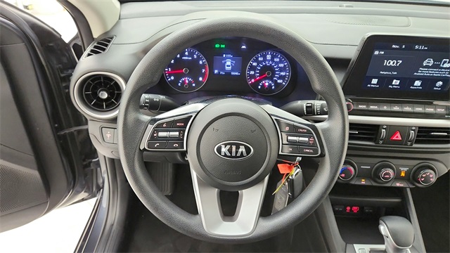 This 2021 Kia Forte LXS 1INSTOCK in Gravity Gray comes with the following features: 2.0L 4-Cylinder MPI CVT FWD 4 Speakers, 4-Wheel Disc Brakes, ABS brakes, Air Conditioning, Alloy wheels, AM/FM radio, Apple CarPlay & Android Auto, Brake assist, Bumpers: body-color, Delay-off headlights, Driver door bin, Driver vanity mirror, Dual front impact airbags, Dual front side impact airbags, Electronic Stability Control, Exterior Parking Camera Rear, Front anti-roll bar, Front Bucket Seats, Front Center Armrest, Front reading lights, Front wheel independent suspension, Fully automatic headlights, Illuminated entry, Lane Departure Warning System, Low tire pressure warning, Occupant sensing airbag, Outside temperature display, Overhead airbag, Overhead console, Panic alarm, Passenger door bin, Passenger vanity mirror, Power door mirrors, Power steering, Power windows, Radio data system, Radio: AM/FM/MP3 Display Audio System, Rear reading lights, Rear window defroster, Remote keyless entry, Security system, Speed control, Split folding rear seat, Steering wheel mounted audio controls, Tachometer, Telescoping steering wheel, Tilt steering wheel, Traction control, Trip computer, Variably intermittent wipers, Wheels: 16" Machine Finish Alloy, and Woven Cloth Seat Trim.
