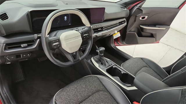 Inside, the modern cockpit blends sophistication with technology, featuring a 12.3-inch touchscreen display, integrated navigation, Apple CarPlay®, Android Auto™, and a premium 6-speaker audio system for seamless connectivity and entertainment. The Cloth/SynTex combination seats offer both comfort and durability, while heated front bucket seats, dual-zone automatic climate control, and a power driver seat enhance every drive. Additional interior highlights include a sport steering wheel, digital driver display, ambient lighting, and a spacious rear seat with a folding armrest for added versatility.