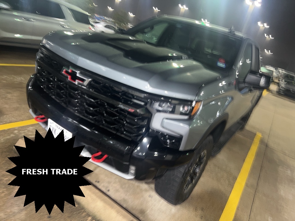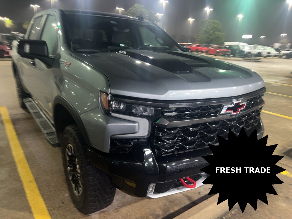 Recent Arrival! Clean CARFAX. Sterling Gray Metallic 2023 Chevrolet Silverado 1500 ZR2 4WD 10-Speed Automatic EcoTec3 6.2L V8 10-Speed Automatic, 4WD, Jet Black/Graystone Leather. Preferred Equipment Group 3LT (10-Way Power Driver Seat w/Lumbar, 10-Way Power Passenger Seat Adjuster w/Lumbar, 12.3" Multicolor Reconfigurable Digital Display, 120-Volt Bed Mounted Power Outlet, 120-Volt Instrument Panel Power Outlet, 170 Amp Alternator, 2 USB Data Ports, 2nd Row Heated Outboard Seats, All-Weather Fl