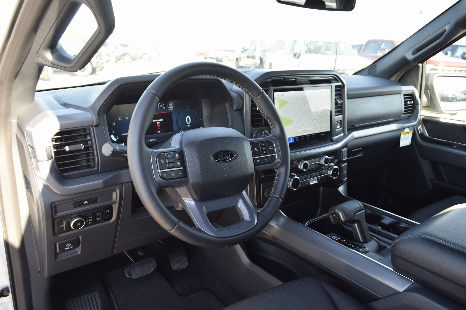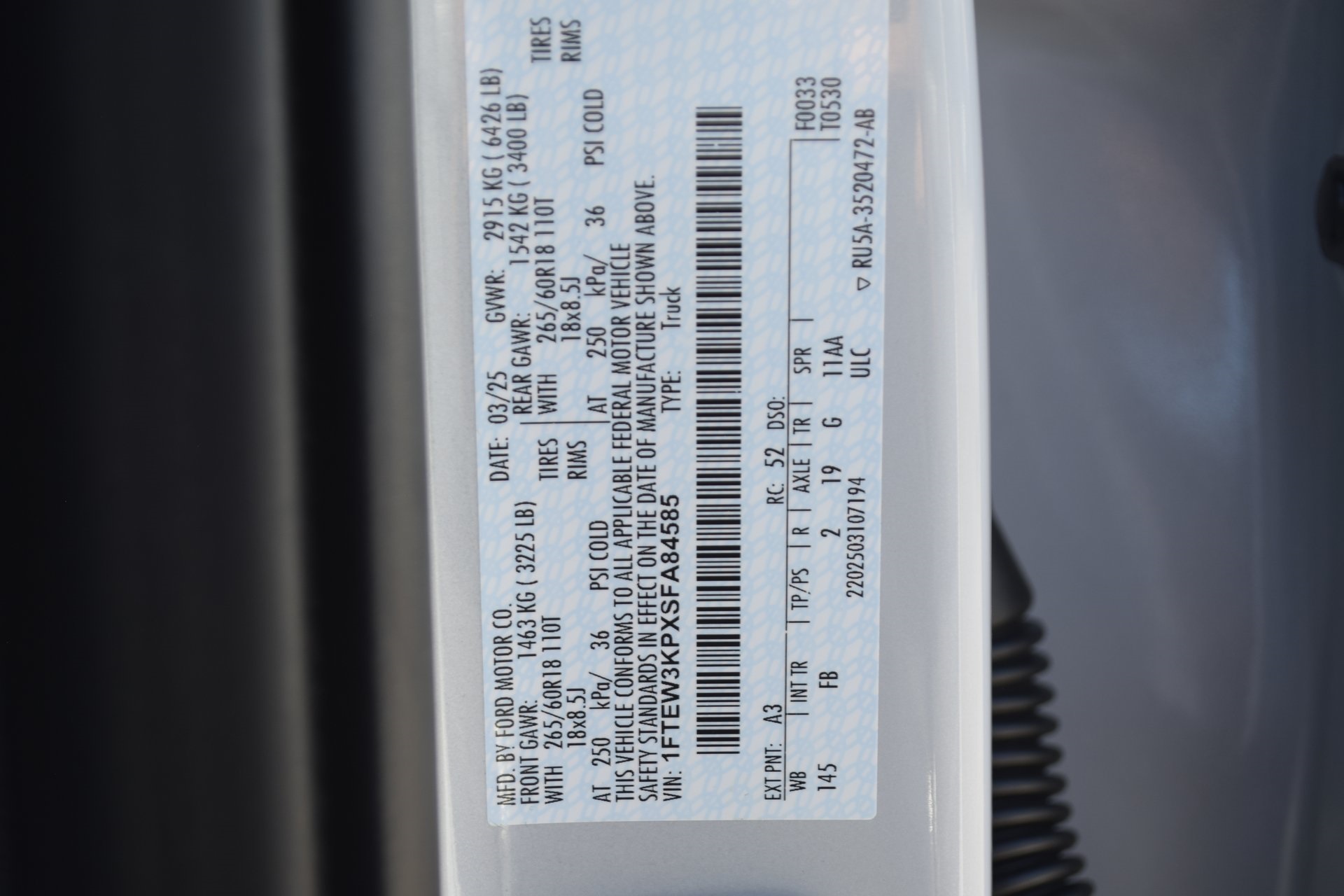 This 2025 Ford F-150 XLT in Space White Metallic comes with the following features: 2.7L V6 EcoBoost 10-Speed Automatic RWD GVWR: 6,426 lbs Payload Package, 3.55 Axle Ratio, 4-Wheel Disc Brakes, 6 Speakers, ABS brakes, Air Conditioning, Alloy wheels, Auto High-beam Headlights, Brake assist, Bumpers: chrome, Cloth 40/20/40 Front Seat, Compass, Delay-off headlights, Driver door bin, Driver vanity mirror, Dual fro