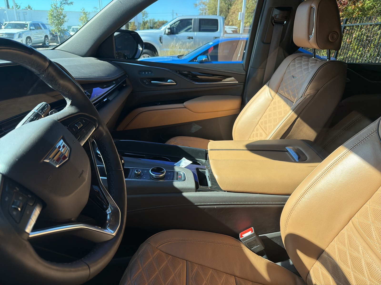 loy (LPO), and Wheels: 22" Interim (LPO)), Preferred Equipment Group 1SC (Adaptive Cruise Control, AKG Studio 19-Speaker Audio System, Automatic Seat Belt Tightening, Body-Color Door Handles, Door Lock & Latch Shields, Electronic Limited-Slip Differential, Enhanced Automatic Emergency Braking, Enhanced Automatic Parking Assist, Glass Breakage Sensor, Heated & Ventilated Driver & Front Passenger Seats, Hitch Guidance w/Hitch View, Integrated Trailer Brake Controller, Power Panoramic Tilt-Sliding Sunroof, Rear Camera Mirror, Rear Camera Mirror Washer, Rear Cross Traffic Alert, Reconfigurable Full-Color Head-Up Display, Reverse Automatic Braking, Running Board Assist Steps, Smart Trailer Integration Indicator, Theft-Deterrent Alarm System, Trailer Side Blind Zone Alert, Vehicle Inclination Sensor, and Vehicle Interior Movement Sensor), Touring Package (Air Ride Adaptive Suspension, Illuminating Front & Rear Sill Plates, and Soft Closing Front & Rear Doors), AWD, 16.9" Diagonal OLED Infotainment Screen, 19 Speakers, 2-Presets Memory For Driver Seat Adjuster, 3 Years of OnStar & Connected Services Plan, 3.23 Axle Ratio, 3rd row seats: split-bench, 4-Way Power Driver Lumbar Seat Adjuster, 4-Way Power Front Passenger Lumbar Seat Adjuster, 4-Wheel Disc Brakes, 8-Way Power Driver Seat Adjuster, 8-Way Power Front Passenger Seat Adjuster, ABS brakes, Adaptive suspension, Air Conditioning, Alloy wheels, AM/FM radio: SiriusXM with 360L, Apple CarPlay/Android Auto, Audio memory, Auto High-beam Headlights, Auto tilt-away steering wheel, Auto-dimming door mirrors, Automatic temperature control, Brake assist, Bumpers: body-color, Compass, Delay-off headlights, Driver door bin, Driver vanity mirror, Dual front impact airbags, Dual front side impact airbags, Electronic Stability Control, Emergency communication system: OnStar and Cadillac connected services capable, Exterior Parking Camera Rear, Four wheel independent suspension, Front anti-roll bar, Front Bucket Seats, Front Center Armrest w/Storage, Front dual zone A/C, Front License Plate Bracket, Front reading lights, Fully automatic headlights, Garage door transmitter, HD Radio, Heads-Up Display, Heated door mirrors, Heated Driver & Front Passenger Seats, Heated front seats, Heated rear seats, Heated steering wheel, Illuminated entry, Leather Seating Surfaces w/Precision Perf Inserts, Low tire pressure warning, Magnetic Ride Control Suspension, Memory seat, Navigation System, Not Equipped w/2nd Row Express-Up Window Control, Occupant sensing airbag, Outside temperature display, Overhead airbag, Overhead console, Panic alarm, Passenger door bin, Passenger vanity mirror, Power door mirrors, Power driver seat, Power Liftgate, Power moonroof, Power passenger seat, Power steering, Power windows, Radio data system, Radio: AM/FM w/Navigation, Rain sensing wipers, Rear air conditioning, Rear anti-roll bar, Rear reading lights, Rear window defroster, Rear window wiper, Remote keyless entry, Security system, SiriusXM w/360L, Speed control, Split folding rear seat, Spoiler, Steering wheel memory, Steering wheel mounted audio controls, Super Cruise, Tachometer, Teen Driver, Telescoping steering wheel, Tilt steering wheel, Traction control, Trip computer, Turn signal indicator mirrors, Variably intermittent wipers, Ventilated front seats, Voltmeter, Wheels: 22" 12-Spoke Polished Alloy, and Wireless Apple CarPlay/Wireless Android Auto. Recent Arrival! Odometer is 17396 miles below market average!