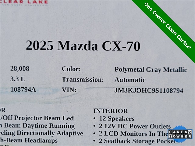 Big Star Chrysler Jeep Dodge Ram Fiat is excited to offer this good-looking 2025 Mazda CX-70. 3.3 Turbo S Premium AWD Polymetal Gray Metallic